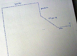 Man kann sich solche Rundungen übrigens sehr gut auf Karopapier vorzeichnen. Das sieht dann ungefähr so aus wie auf dem Bild rechts. Es zeigt den halben Ausschnitt.