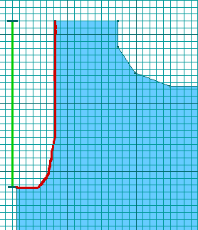 als die Armausschnitthöhe (grün in der anderen Zeichnung), sie