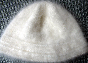 Anleitung für quer gestrickte Mütze© 2006 Kerstin Michler nach einer Idee von Dodo Bürkel. Die Weitergabe dieser Anleitung ist erlaubt, sofern dieser Copyright-Hinweis dabei ist. Die Verwendung dieser Anleitung für kommerzielle Zwecke ist nicht zulässig. Material: ca. 75 g (oder etwa 200 m) Wolle mit etwa 135 m Lauflänge auf 50 g oder z.B. Angoramischgarn. Bei Angoragarn benötigt man weniger Gramm, weil es leichter ist, jedoch dieselbe Länge. Strickmaschine: Standard (4,5 mm Nadelabstand) mit Doppelbettergänzung. Maschenweite: 9/4, d.h. am HNB-Schlitten 9, am VNB-Schlitten 4. | ||||||||||||||||||||||||||||||||||||||||||||